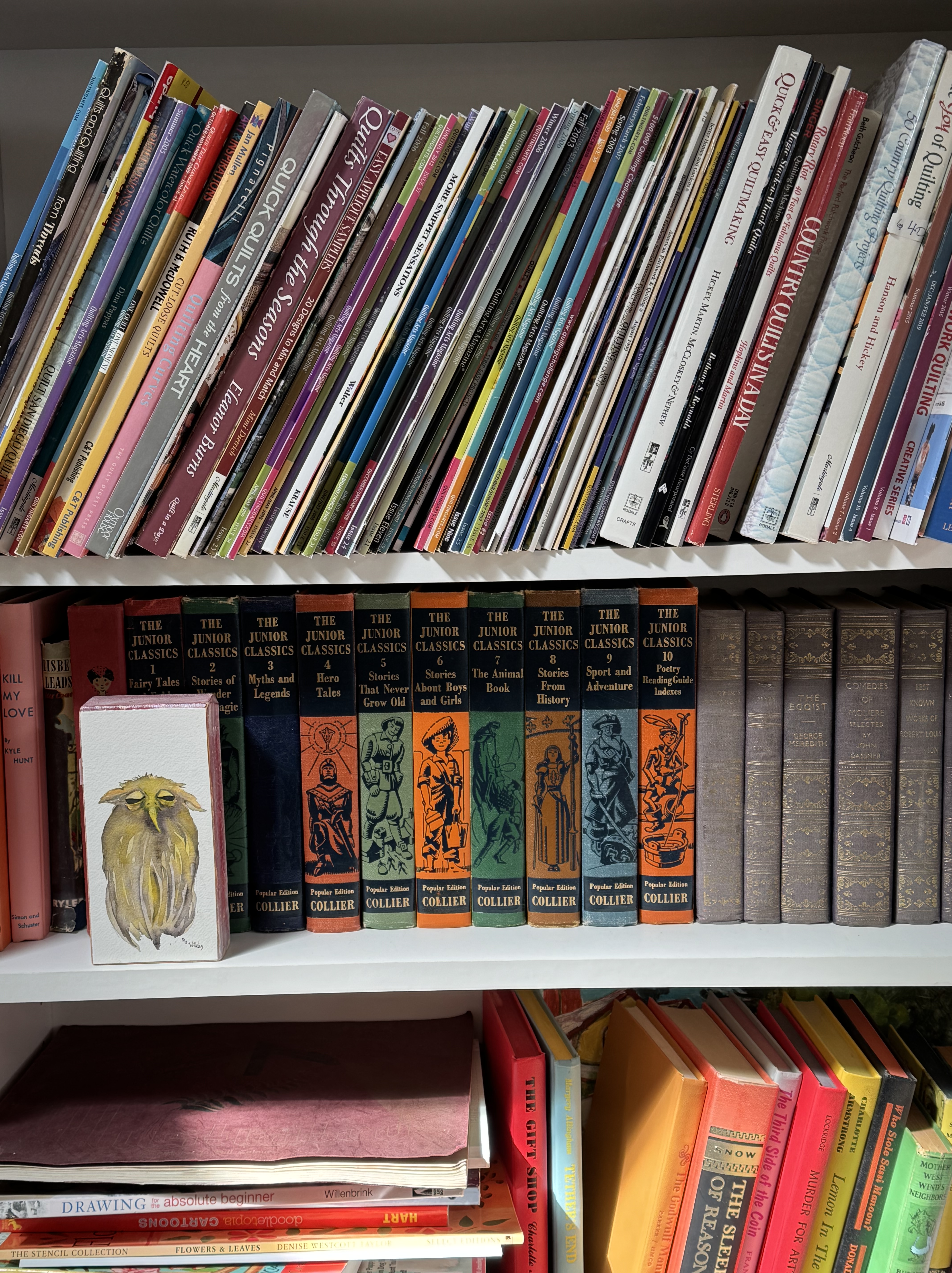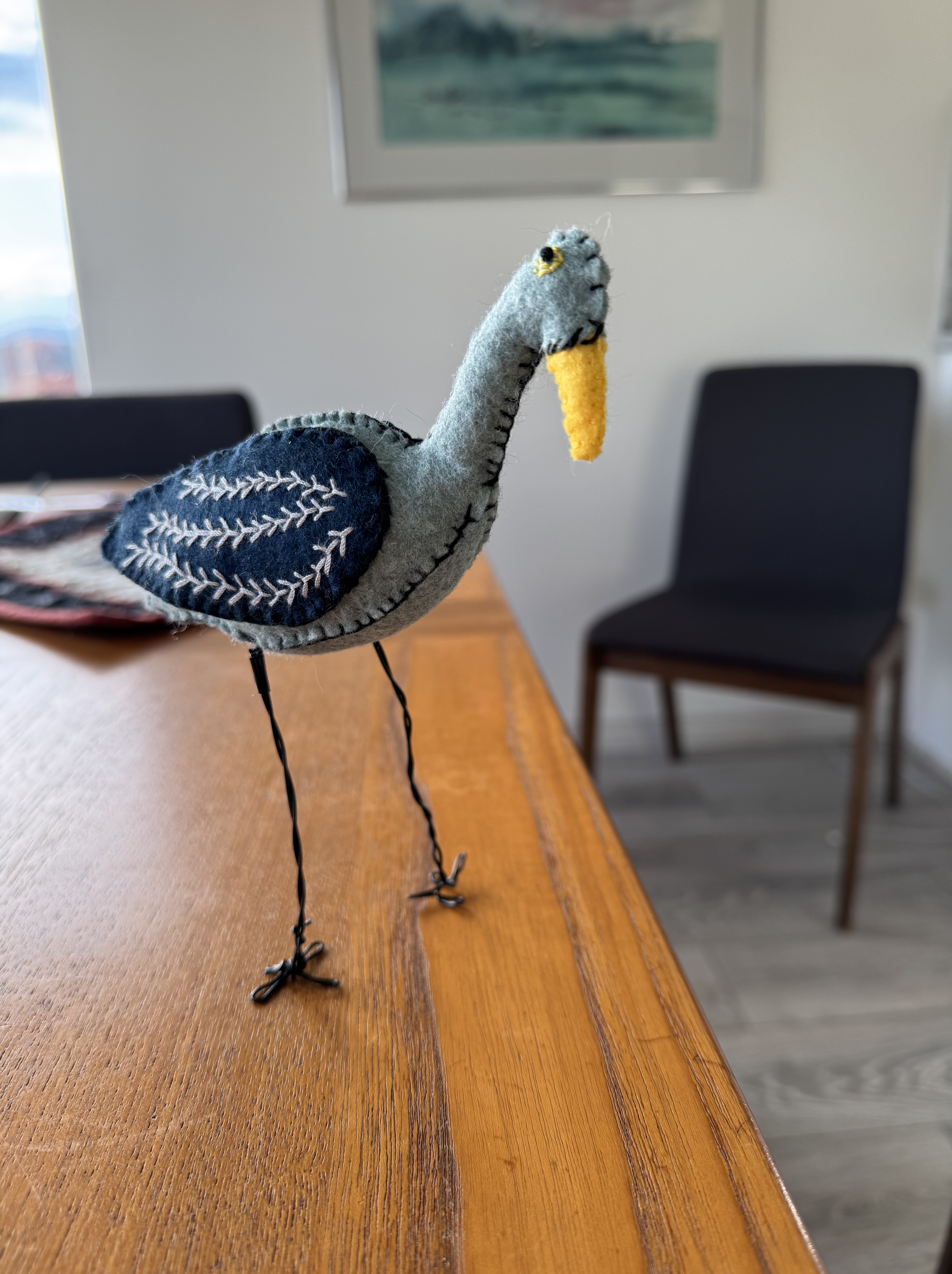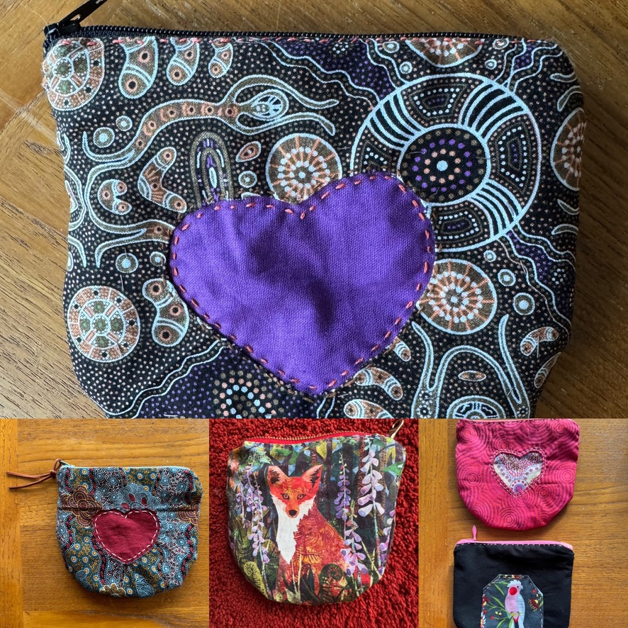 Kathryn’s robinAllison’s pigeonEvan’s heronNancy’s reversible purple apronNancy’s reversible purple apronSarah’s swanI made felt hearts for friends at Christmas.Nat’s puffinNat’s puffinI started a quilt for Lillian’s great grandson, FoxWilson the owl, a gift for Michael Magic bag lined with fake fur for Nat’s 30th birthdayWomen in Need’s Upcycle and Craft store on North Park Avenue. I work there on Thursday afternoons.
