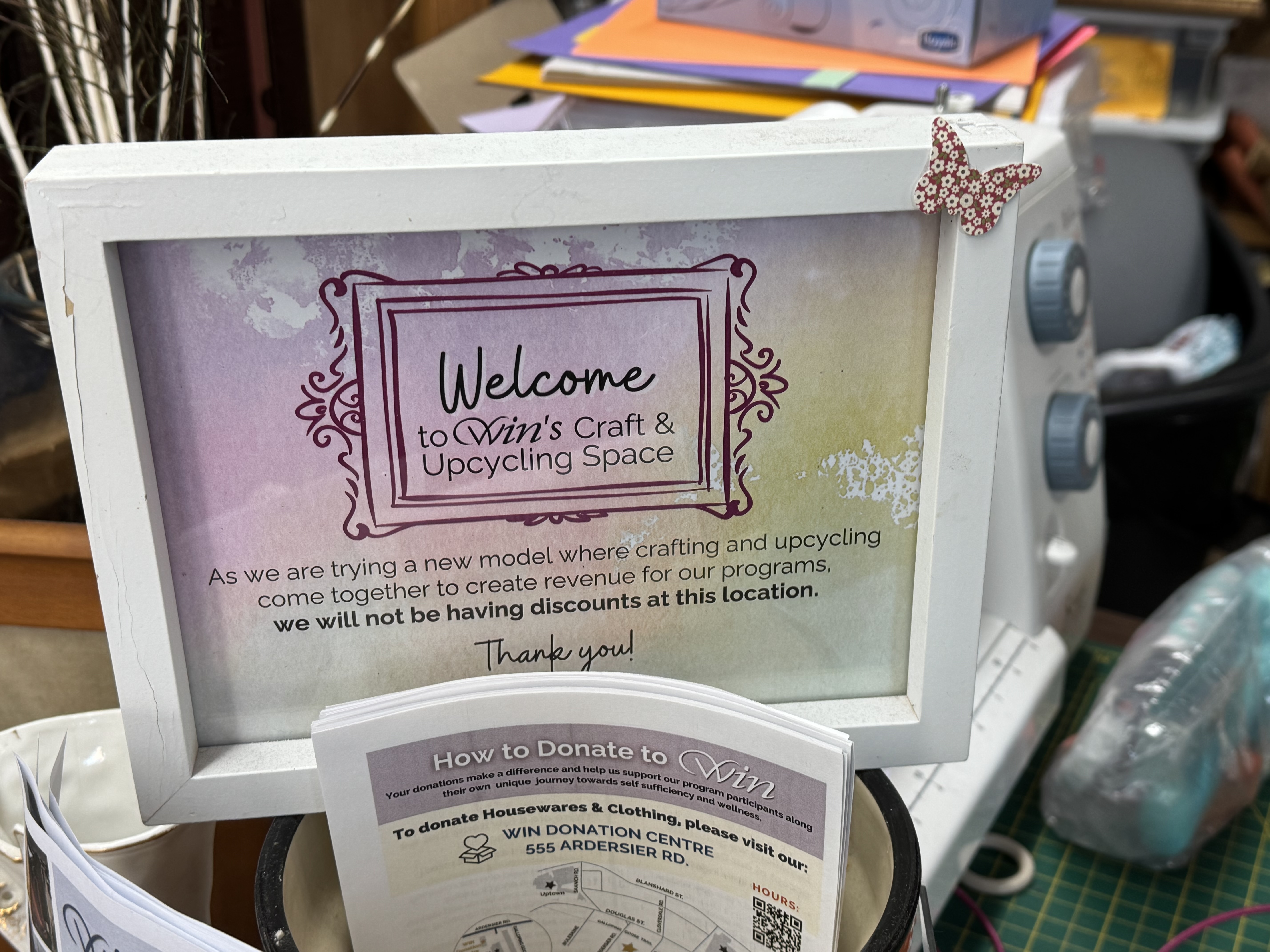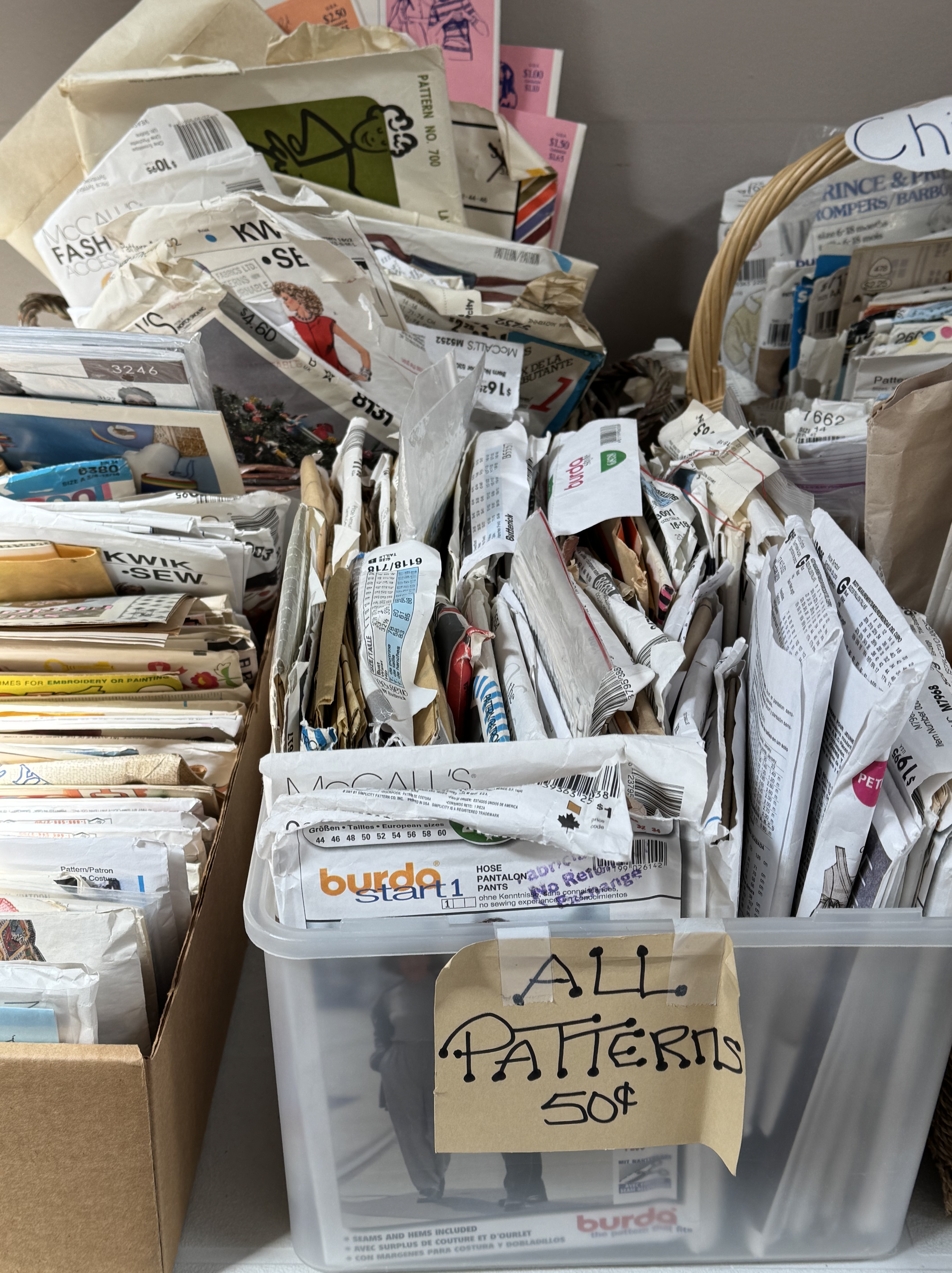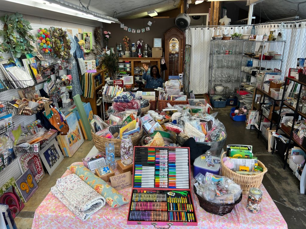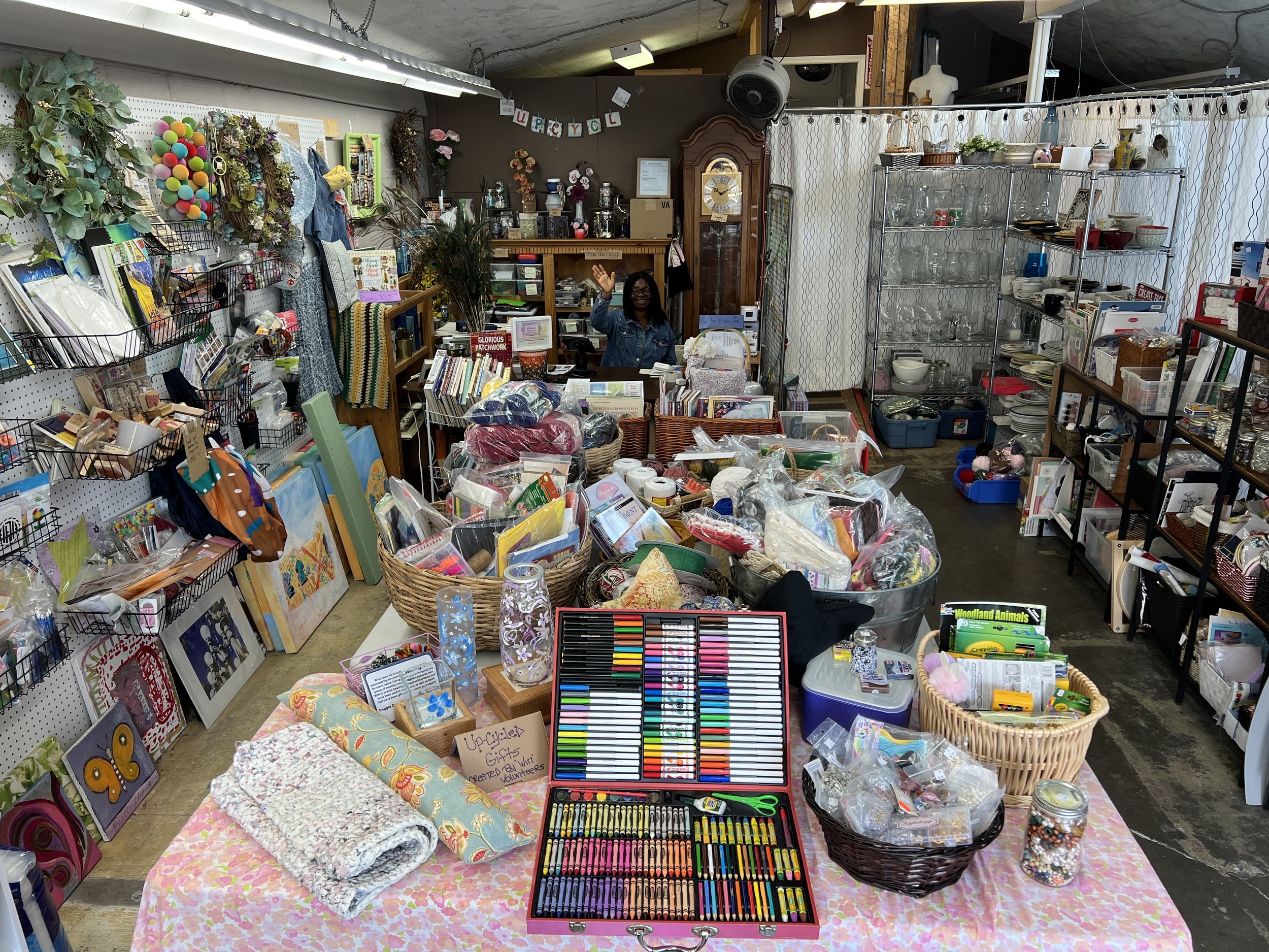 I happen to volunteer at one of those stores, Women in Need Upcycle and Craft, so I am biased. We just expanded to double the space, and every week I open boxes of fresh treasures to line our shelves. Some weeks it’s skeins of merino wool and tiny wooden canoes. Other times it might be a kit to make a paper lamp and bags of beautiful retro fabrics and lace.
