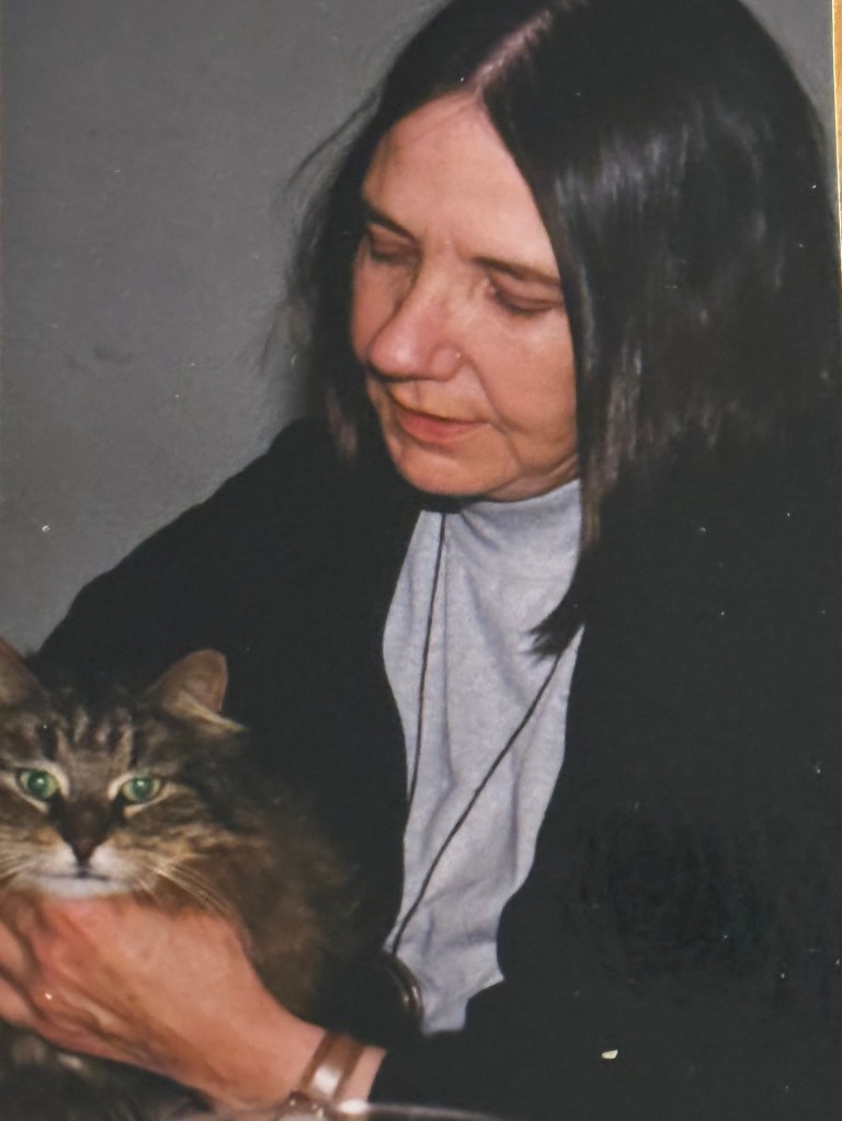 She claimed us, wandering back and forth from my cottage to Peter’s. When Peter gardened, she stayed close to his side, and when I sewed, she spread out on the table next to me, her purr matching the vibration of the sewing machine. And though Alma said she’d not have another cat for love nor money, there were many nights when Nia wandered into her cottage and curled up on her bed.