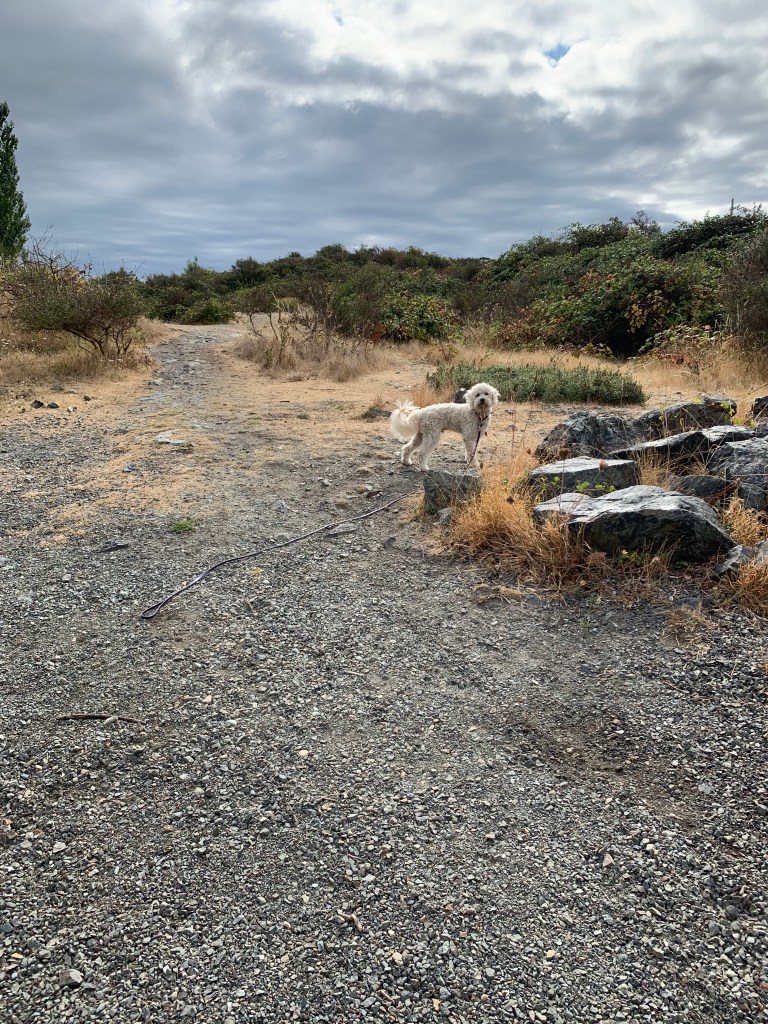 About a week ago, on our morning dog walk, we stood waiting for the traffic light to change and a young girl, perhaps nine, long dark hair, hooded coat and wearing a backpack, approached and stood near us. She looked over at us a couple of times. When the light turned green, she walked in front of us a few metres, but she kept turning back, peering around her big hood to look at me. And at one point, as we crossed the bridge over the Gorge, I decided to say something. “Do you like dogs?” I thought perhaps she was looking at us because of Marvin, our goldendoodle, who trundled along beside us, at the end of his purple leash. Lots of times kids want to pet him, but they’re too shy to ask.