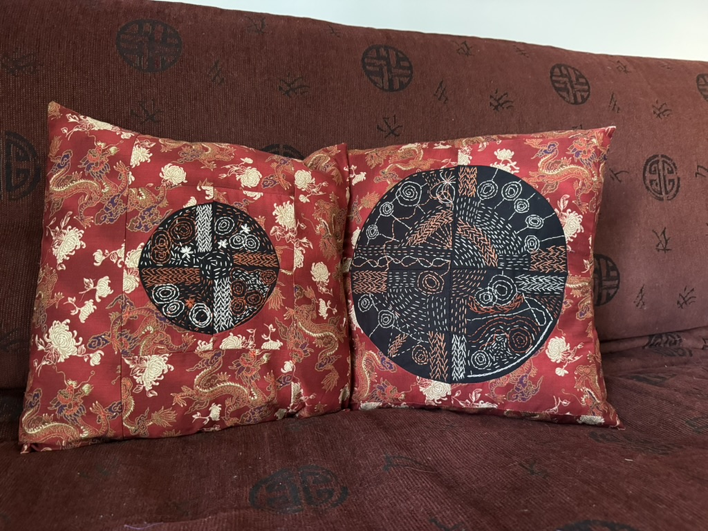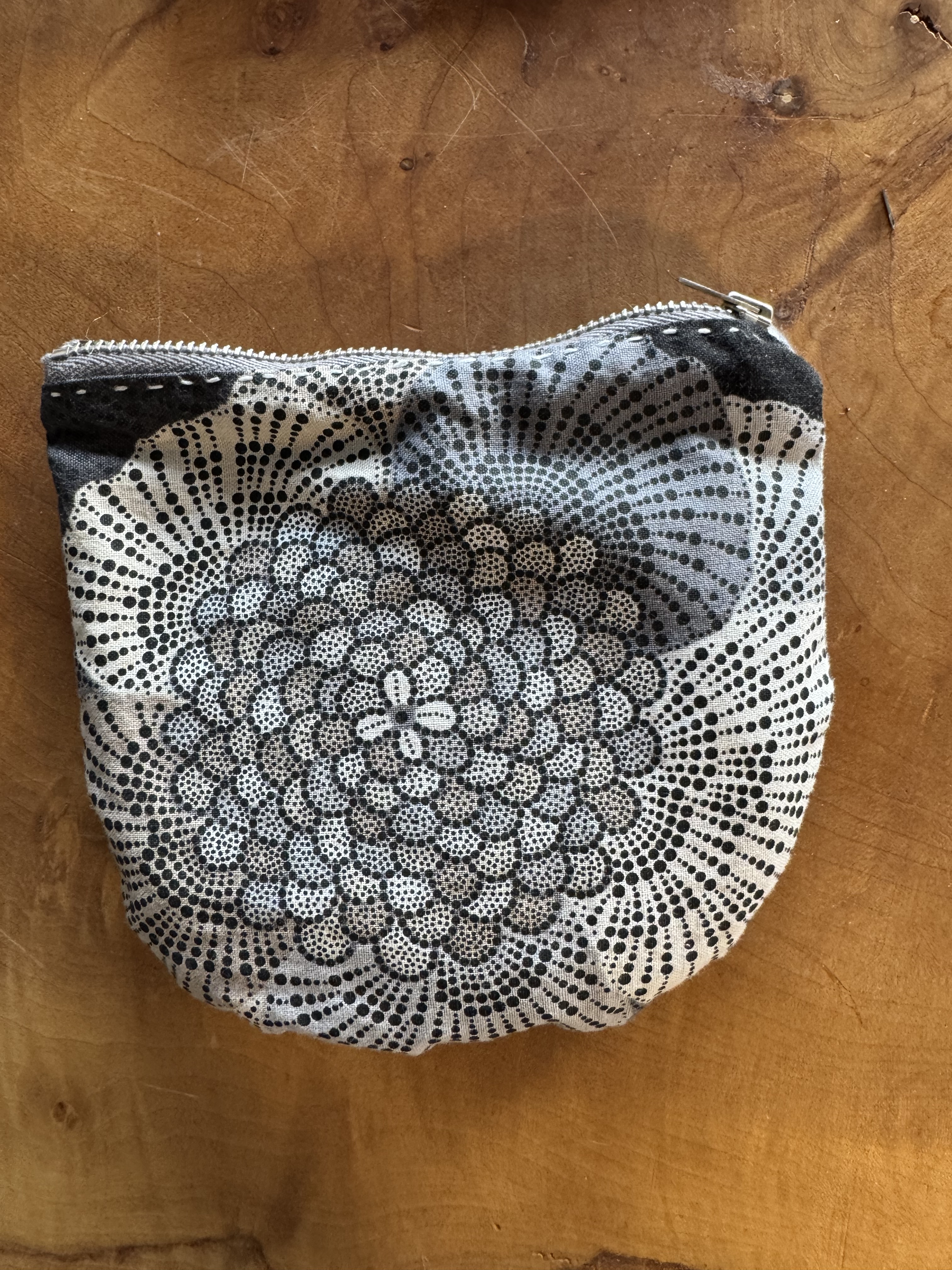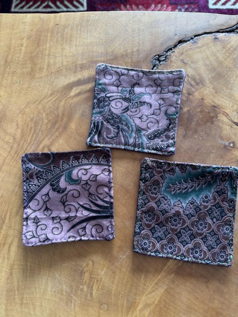 I didn’t have a chance to visit Tatter. However, in February, I took one of their classes on Zoom with Karen Stevens. We learned to hand-sew zippered pouches. Through this class, I rediscovered the enjoyment of hand sewing. The whole-body rhythm of a slow, contemplative backstitch and the satisfying emergence of a line of running stitches along a zipper‘s edge or around an appliqué. There is no rush with hand sewing, no urgency like I feel sometimes when I am at the machine. Hand sewing is portable and calming.