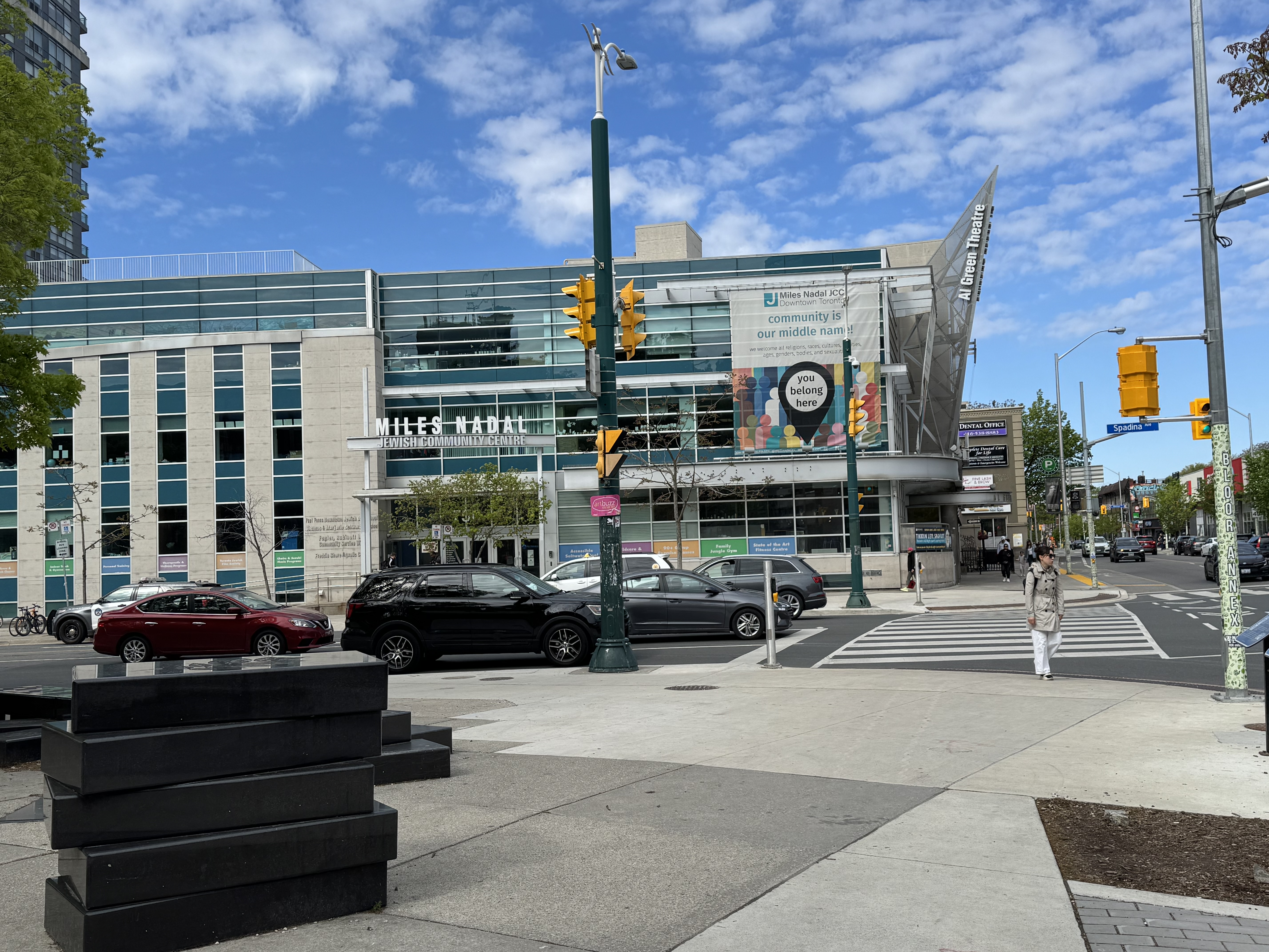 I cross the street twice to the southwest corner and pull on the doors of the Jewish Community Centre, but my pull meets resistance. A security guard opens the door from the other side, just a few inches, and peers at me. “I am trying to get into the coffee shop,” I say. “No more coffee shop. Coffee shop no more,” a sort of palindrome of endings. And he closes the door in my face.
