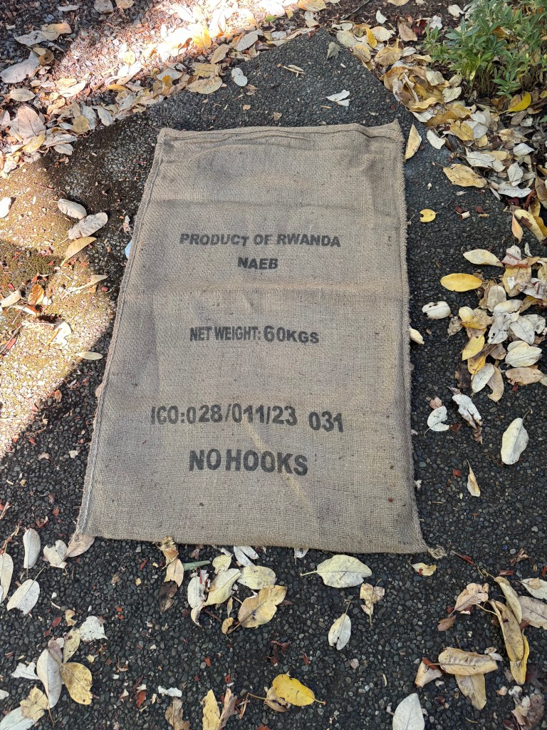 Inevitably, I am called upon to make joy’s counterpart. I had coffee with a friend yesterday at Esquimalt Roasting Company. As I waited at the counter for our lattés, I noticed a large burlap bag draped over a plastic bucket. I picked it up and showed it to the barista. Can I buy this? I asked. In my imagination, I was already picking its seams and spreading it out, a wide brown canvas for thousands of sorrows. It’s free! she responded. So now I have the backdrop for the wall hanging. I had originally thought it should be black, but brown is less dramatic than black, more subdued and complex, as sorrows often are, especially as we digest them.