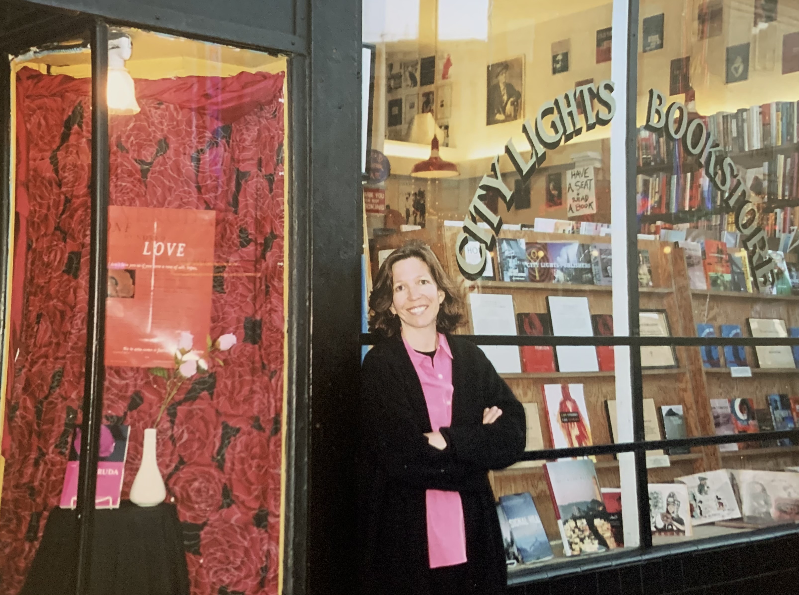 Arms folded, face glowing, radiant smile, I stand in front of City Lights, the iconic San Francisco bookstore started by Lawrence Ferlinghetti in 1953. I remember we had fun that trip, and I look happy. Yet it’s the portrait of a faker. The fakery is that I am wearing a hot pink button-down shirt under a black jacket. The hot pink cover on a book of love poems in the window display matches the uncharacteristic hot pink of my blouse.