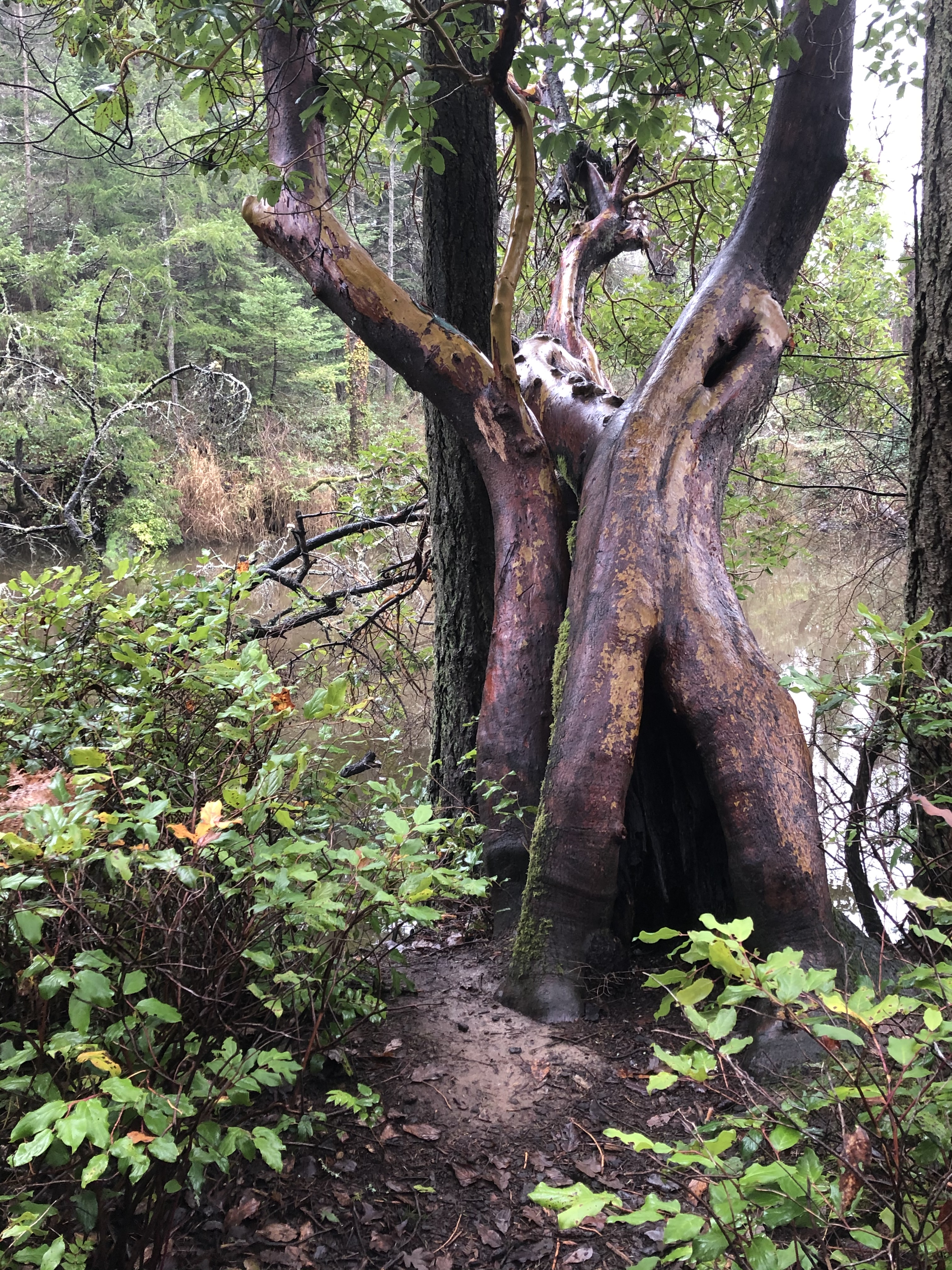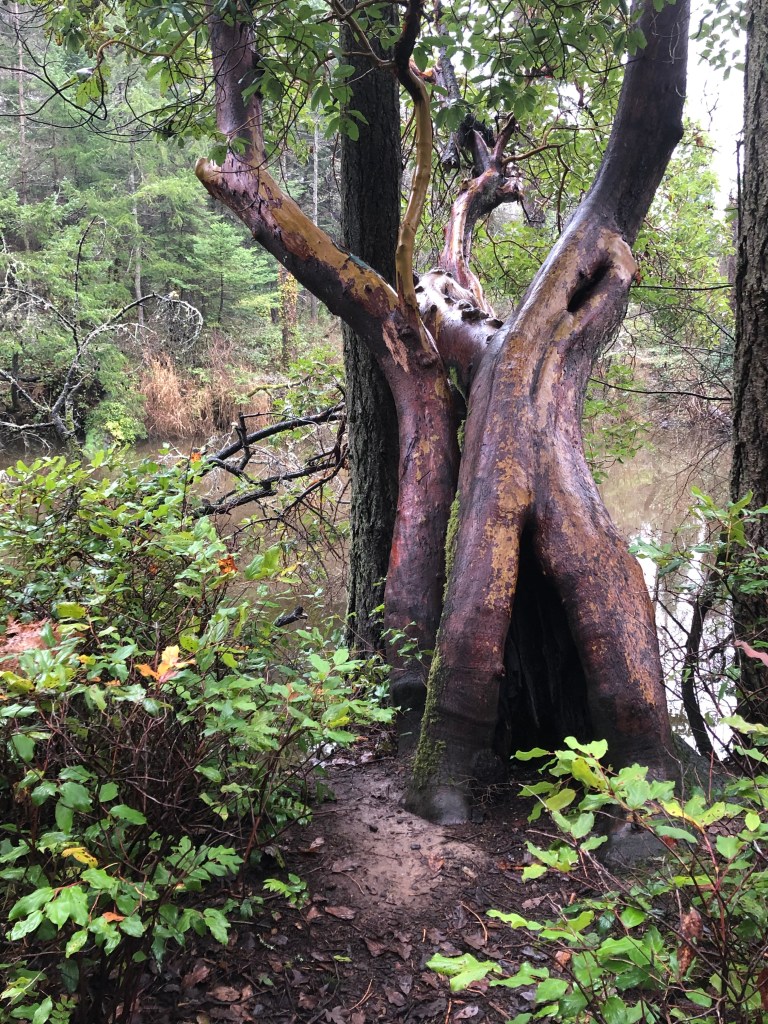 In keeping with my mood of asceticism, I recently deleted my Facebook and Instagram accounts. Unlike the birds who used to sing outside my window, FB and IG will not be mourned. I feel light as I step through life with a new red pedometer safety-pinned to my leggings (the pedometer frees me from carrying a “smart” phone to count steps). Michael, Marvin, and I amble down to the beach at Thetis Cove to watch the sky change. Rippled water reflects a bank of pink clouds.