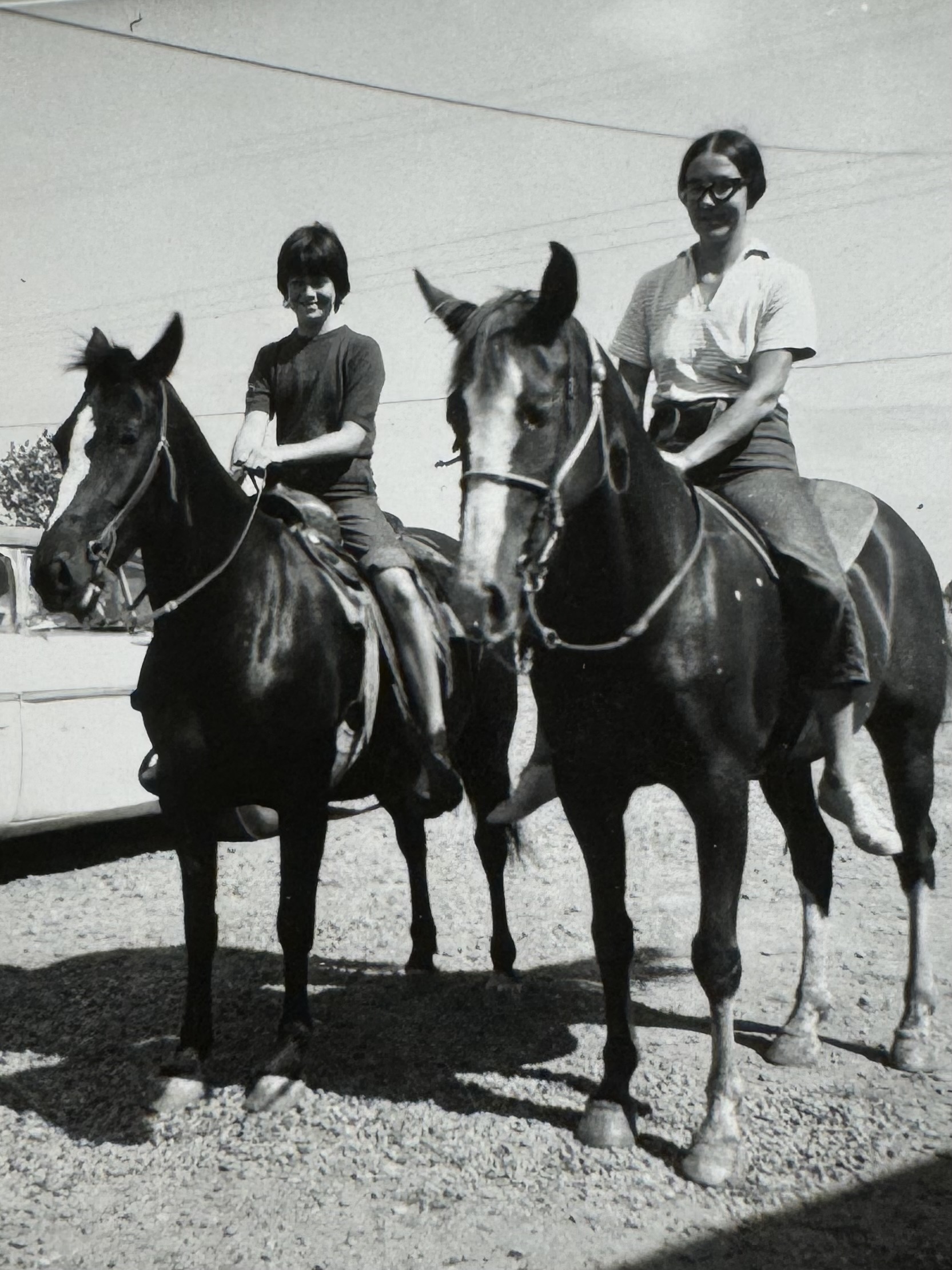 The horses were gentle at the Children’s Farm, Tilden Park , Berkeley My cousin and mother riding horses at Aunt Fran’s farm, early 1960s