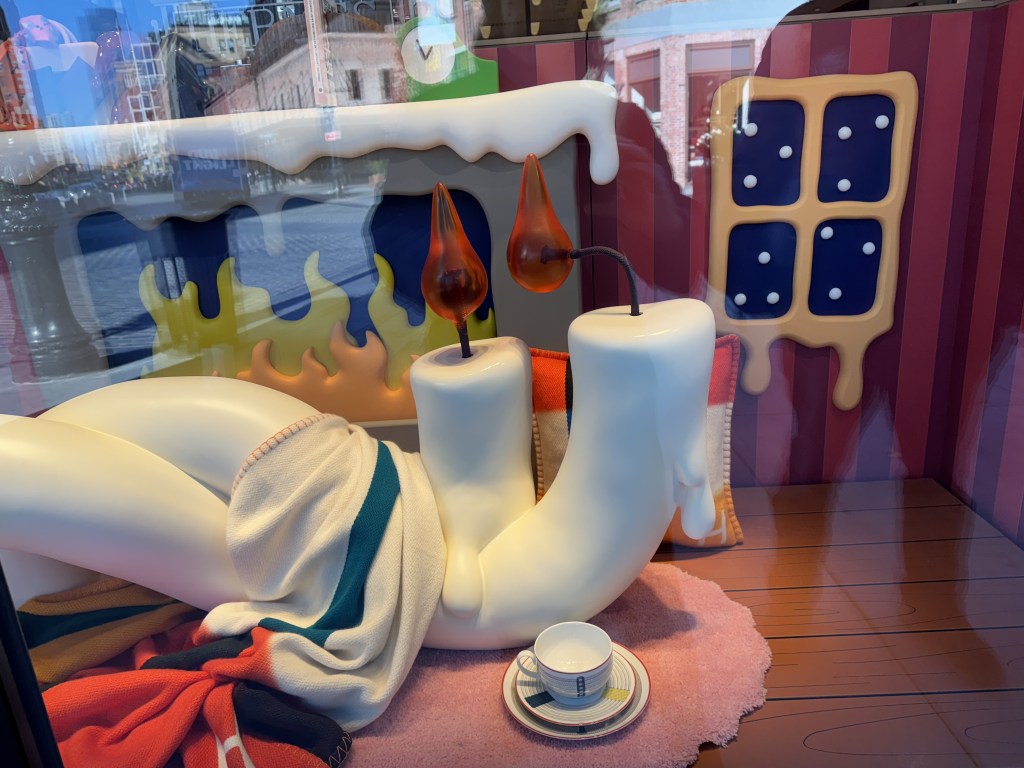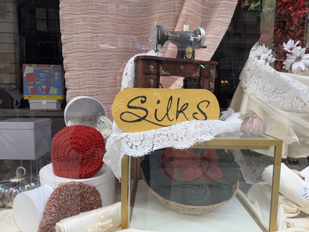 It’s cold in Toronto for late May. I wear a toque, jacket, leather gloves. But now I wish I’d brought a scarf. I admire the scarves in the window of Black Goat Cashmere, next to Ashley’s in what used to be called the Colonnade. This mall was one of my mother’s favourite places; after window shopping Bloor Street arm in arm, we’d drink coffee and eat pastries at the Coffee Mill at the back of the Colonnade.
